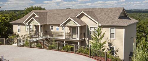 The Lodges at Timber Ridge are nestled into the rolling folds of the Ozark countryside, with beautiful landscaping, forest and pond views, and an Owner's Lounge featuring a fitness center, activity center, games and TVs, and our 10,000 square foot Splash-a-Torium.